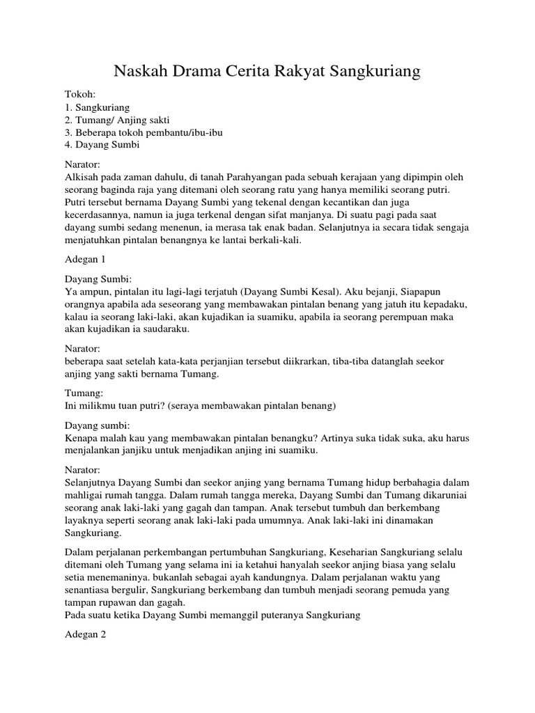 Naskah Drama Cerita Naskah Drama Cerita 500 Terry Francois Street San Francisco CA 94158. Pada suatu hari seperti biasa Sangkuriang mengajak Tumang unrtuk berburu di hutan. 548 AM Posted by Endrio Pangestu.