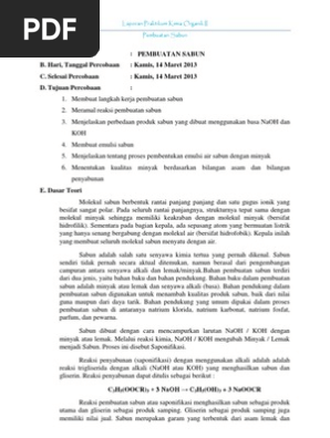 Entri ini ditulis di Uncategorized dan ber-tag Bahan-bahan Pembuatan Sabun LAPORAN PRAKTIKUM KIMIA INDUSTRI Pembuatan Sabun PEMBUATAN SABUN Reaksi Penyabunan Sifat Sifat Sabun pada Mei 30 2020 oleh. Admin blog Seputar Laporan 2019 juga mengumpulkan gambar-gambar lainnya terkait laporan praktikum pembuatan sabun mandi cair dibawah ini. BTUJUAN Tujuan dari pembuatan laporan ini adalah untuk mengetahui proses konversi dan proses pembuatan sabun cair.